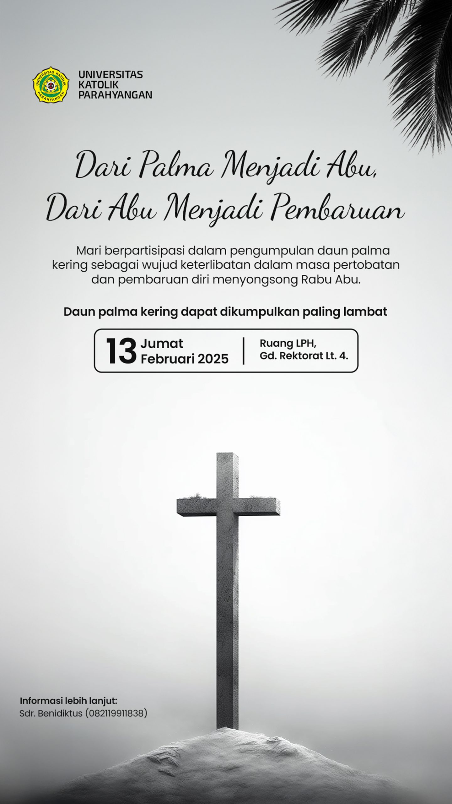 Daun palma kering dapat dikumpulkan paling lambat hari Jumat, 13 Februari 2026, di Ruang LPH, Gd. Rektorat Lt. 4.